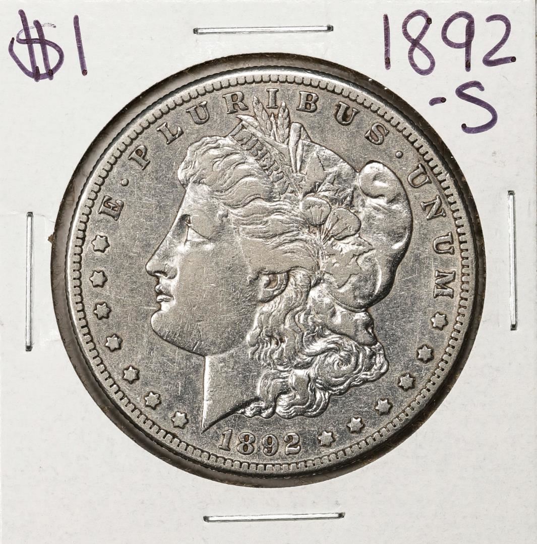One 1892-S $1 Morgan Silver Dollar Coin.