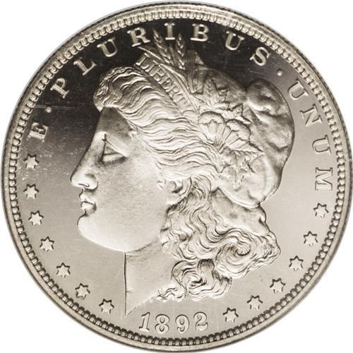 <B>1892 S$1 PR67 <img border='0' src='http://www.heritagecoins.com/images/star.gif' width=10 height=10> Cameo NGC.</B></I> Many proof dollars dated 1892 continue the trend, that began in 1888, of a flat strike in the hair over Liberty's ear and on the eagle's breast feathers. This has prompted David Bowers (1993) to comment: "Among extant 1892 and 1893 Morgan dollars the flatness is particularly noticeable; more so than in the earlier years. Perhaps half of the surviving 1892 proof dollars show this lack of detail."<BR> This is undoubtedly one reason that NGC assigned the coveted Star designation to this Superb Proof Cameo. Striking details are exceptionally well brought up, with clear delineation evident in the hair over Liberty's ear and on the eagle's breast feathers. Moreover, the essentially untoned surfaces yield a nearly white-on-black contrast, and are immaculately preserved. Census: 2 in 67 <img border='0' src='http://www.heritagecoins.com/images/star.gif' width=10 height=10> Cameo, 1 finer Cameo <img border='0' src='http://www.heritagecoins.com/images/star.gif' width=10 height=10> (10/06).<BR><BR><b>Shipping:</b> Coin/Currency (<a target="_blank" href="http://www.heritageauctions.com/common/shipping.php">view shipping information</a>)