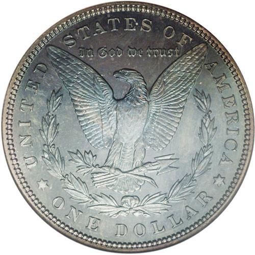 <B>1892<img border='0' src='http://www.heritagecoins.com/images/star.gif' width=10 height=10>$1> PR68 NGC.</B></I> Deeply toned with considerable underlying cameo contrast. The devices are fully lustrous and are surrounded by deeply mirrored fields, although this example has not been given the cameo designation, likely due to the deep steel, blue, lilac, and iridescent toning that covers both sides. All of the design elements are boldly detailed, while the surfaces are so nearly perfect without any evidence of imperfections. There is no doubt that this pristine Gem example has remained in its original unconserved state since the time it was minted. Census: 5 in 68, 0 finer (1/06).
