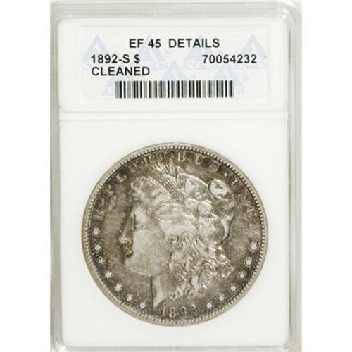 <B>1892-S $1 --Cleaned--ANACS. XF45 Details.</B></I> NGC Census: (741/816). PCGS Population (583/678). Mintage: 1,200,000. Numismedia Wsl. Price for NGC/PCGS coin in XF45: $744. (#7218)<BR><BR><B>Coin Engraver:</B> George T. Morgan<BR><BR><b>Shipping:</b> Coins & Currency (<a target="_blank" href="http://www.heritageauctions.com/common/shipping.php">view shipping information</a>)