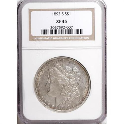 <B>1892-S $1 XF45 NGC.</B></I> NGC Census: (744/818). PCGS Population (586/681). Mintage: 1,200,000. Numismedia Wsl. Price for NGC/PCGS coin in XF45: $744. (#7218)<BR><BR><B>Coin Engraver:</B> George T. Morgan<BR><BR><b>Shipping:</b> Coins & Currency (<a target="_blank" href="http://www.heritageauctions.com/common/shipping.php">view shipping information</a>)