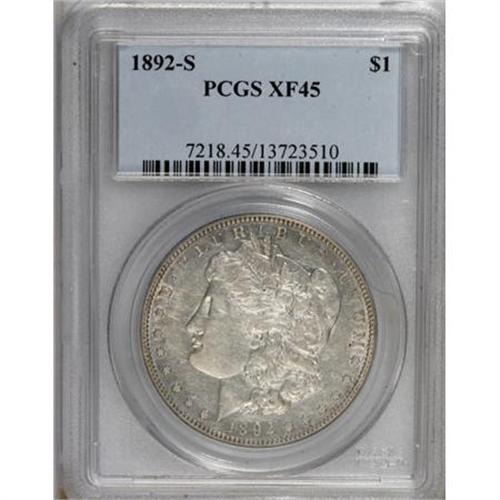 <B>1892-S $1 XF45 PCGS.</B></I> PCGS Population (572/672). NGC Census: (732/812). Mintage: 1,200,000. Numismedia Wsl. Price for NGC/PCGS coin in XF45: $744. (#7218)<BR><BR><B>Coin Engraver:</B> George T. Morgan<BR><BR><b>Shipping:</b> Coins & Currency (<a target="_blank" href="http://www.heritageauctions.com/common/shipping.php">view shipping information</a>)