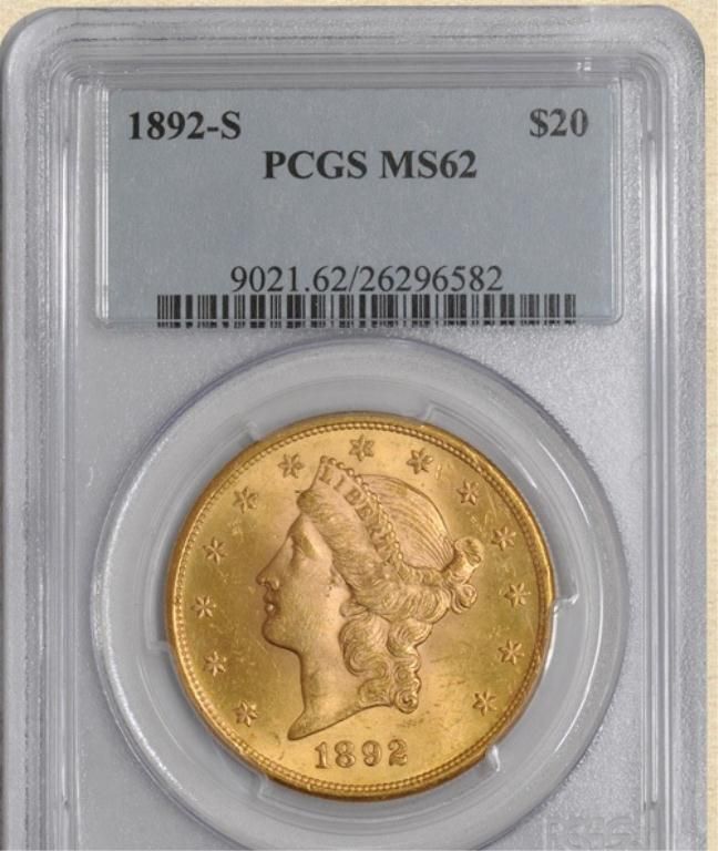 1892-S $20 Liberty MS62 PCGS