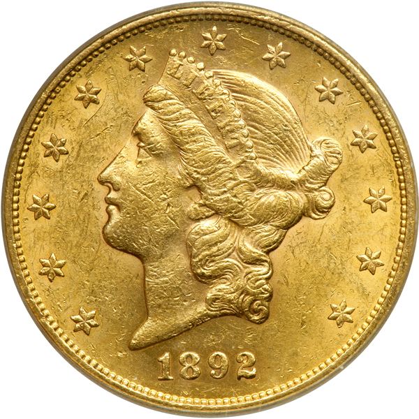 1892-S $20 Liberty. SEGS graded AU-58. Breen's "so-called" 2/1. Some light to moderate obverse contact marks.