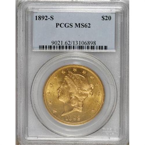 1892-S $20 MS62 PCGS. PCGS Population (952/503). N