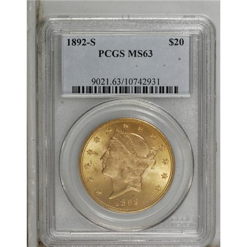 1892-S $20 MS63 PCGS. Many 1892-S double eagles, along