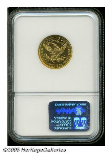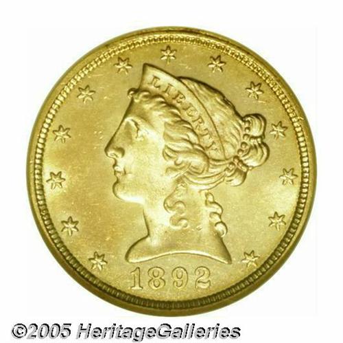 <B>1892-S<$5> MS64 NGC.</B></I> A splendid, Condition Census 1892-S Half Eagle that is very nearly of full Gem quality. The fields have a shimmering, semi-prooflike finish that is virtually uninterrupted by signs of contact and the devices are predictably sharp. Population: 2 in 64, 1 finer (5/05).