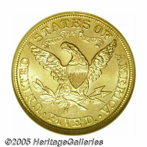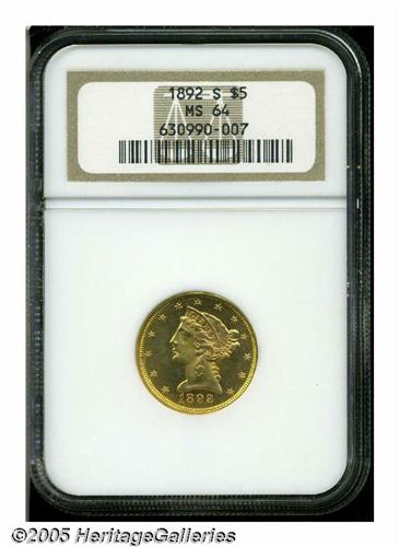 1892-S $5 MS64 NGC. A splendid, Condition Census