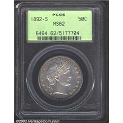 1892-S 50C MS62 PCGS. This first-year Barber Half from the San Francisco Mint is toned in lilac-gray