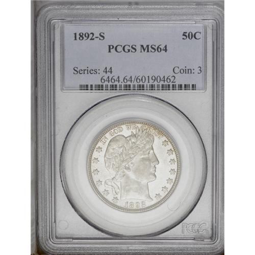 "1892-S 50C MS64 PCGS. David Lawrence, i"