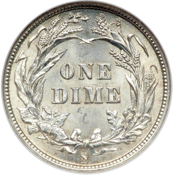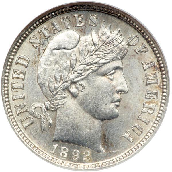 1892-S. NGC graded MS-64. Well struck and untoned. First-year issue Barber coins have a certain charm. And when, in addition, they are branch mint issues like this ’92-S Barber Dime, and therefore scarcer (sometimes much scarcer) than a P-mint counterpart, the appeal is magnified. Pop 44; 3 in 65, 2 in 66.