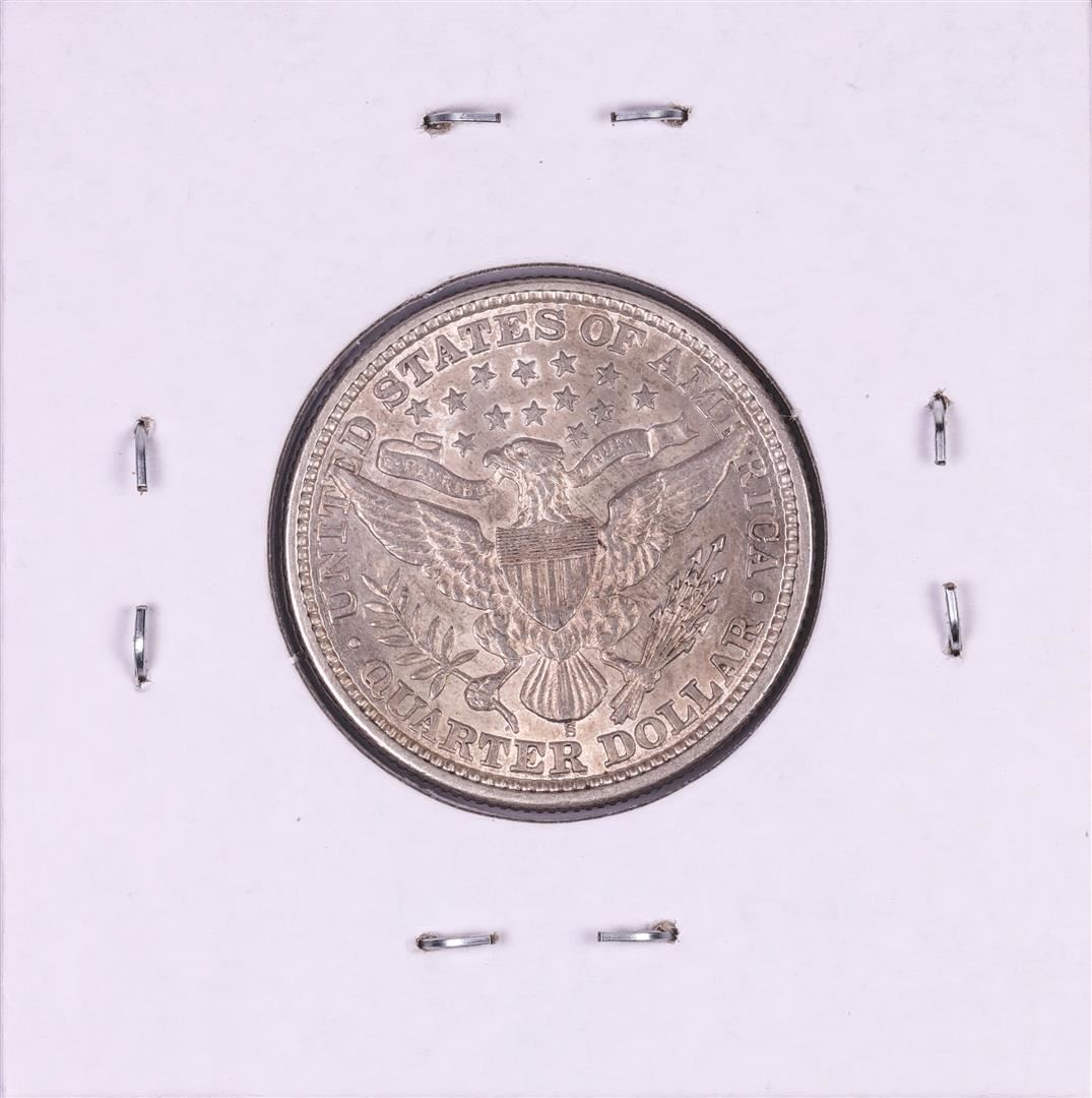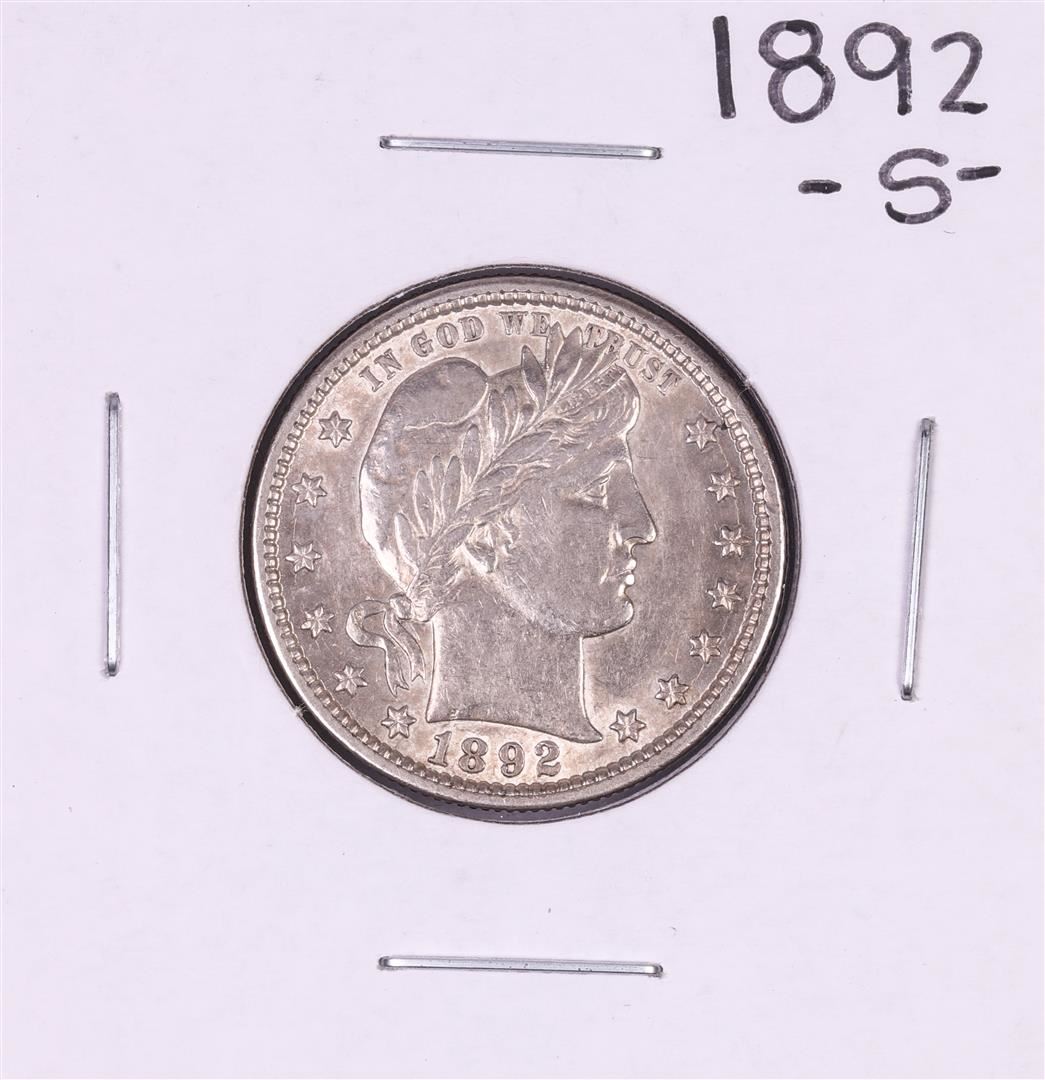 One 1892-S Barber Quarter Coin.