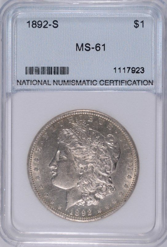 1892-S MORGAN SILVER DOLLAR, NNC MS-61 WHITE, VERY RARE , THE 1st WE'VE HAD