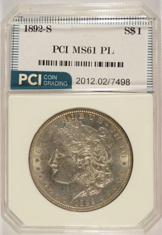 1892-S MORGAN SILVER DOLLAR, PCI MS-61 PL RARE!! l LISTS FOR $40,000.00.