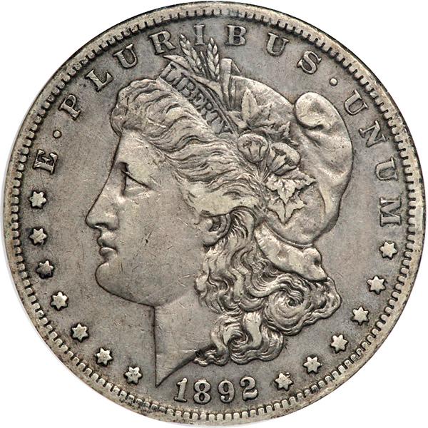 1892-S Morgan Dollar. NGC graded EF-45. Well cared-for and displaying natural light to medium old-silver gray hues. Scarcer year (PCGS # 7218) .