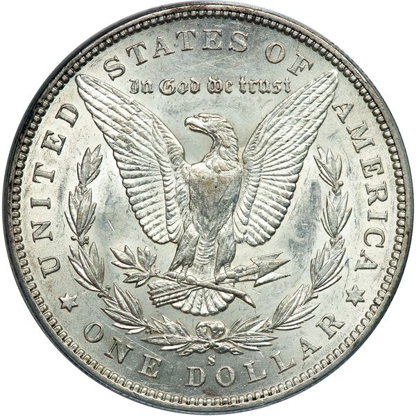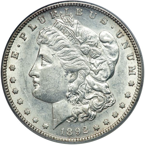 1892-S Morgan Dollar. PCGS graded AU-55. Plenty of luster remains. A rare coin in grades of EF and better (PCGS # 7218) .