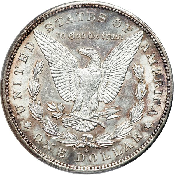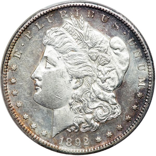 1892-S Morgan Dollar. Lightly toned with some light marks and prooflike surfaces. Also some light hairlines. Our grade is Sharpness of AU (PCGS # 7218) .
