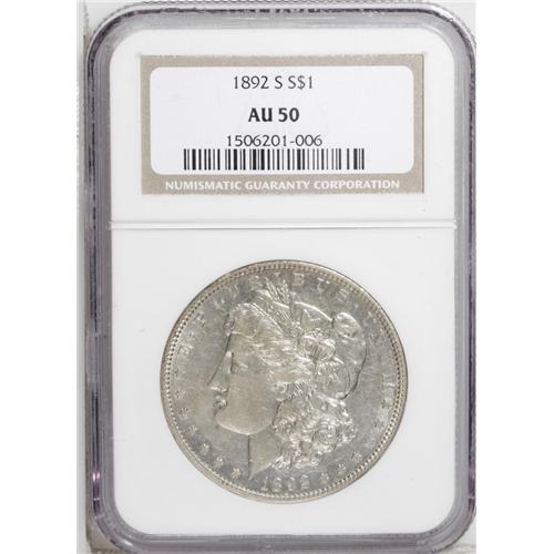 1892-S S$1 AU50 NGC. A lightly worn example that sport