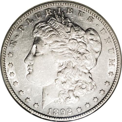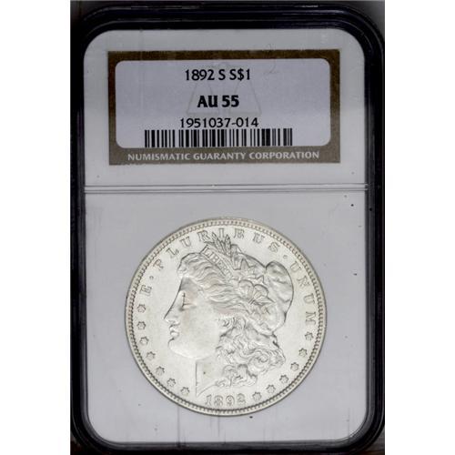 <B>1892-S<img border='0' src='http://www.heritagecoins.com/images/star.gif' width=10 height=10>$1> AU55 NGC.</B></I> An essentially untoned, minimally abraded, and richly detailed representative of this elusive issue. One of the most difficult dates in the series to obtain in AU and higher grades. In fact, this example appears to fit nicely in any high grade set.