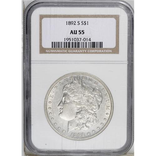 1892-S S$1 AU55 NGC. An essentially untoned, minimally