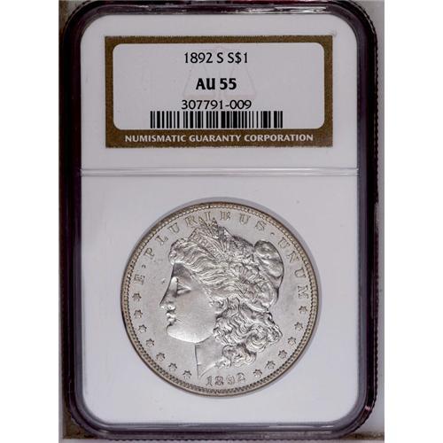 1892-S S$1 AU55 NGC. Boldly struck, even if slightly w 1892-S[img border='0' src='http://www.heritag