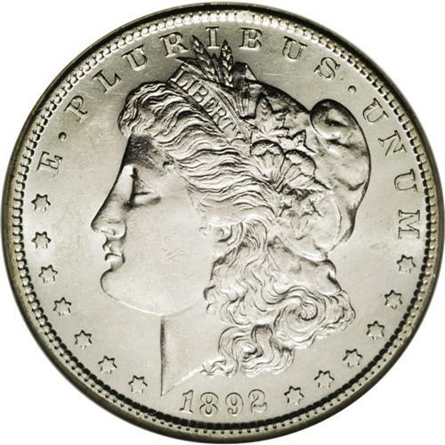<B>1892-S<img border='0' src='http://www.heritagecoins.com/images/star.gif' width=10 height=10>$1 AU58 NGC.</B></I> The boldly struck surfaces are almost completely lustrous and show only a few light contact marks on Liberty's cheek. A noted condition rarity in the Morgan Dollar series, the '92-S has long been a collector favorite. Mint State examples are very elusive, and quite expensive, therefore a lustrous, borderline Uncirculated example such as this will fit nicely in many advanced Dollar collections without the higher price tag. Census: 75 in 58, 44 finer (1/06).