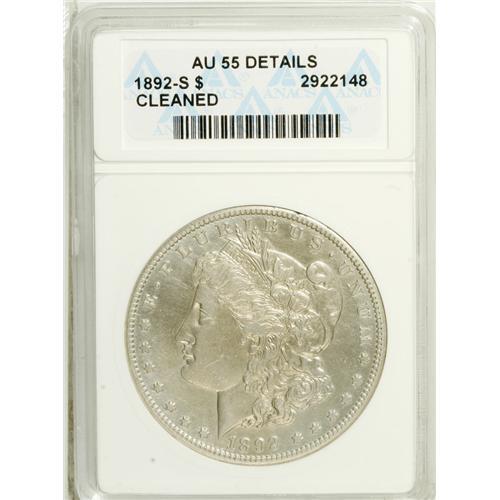 1892-S S$1 --Cleaned--ANACS. AU55 Details. The shiny su