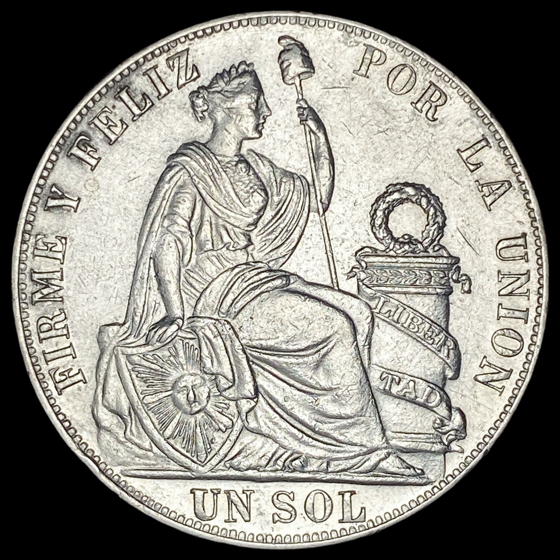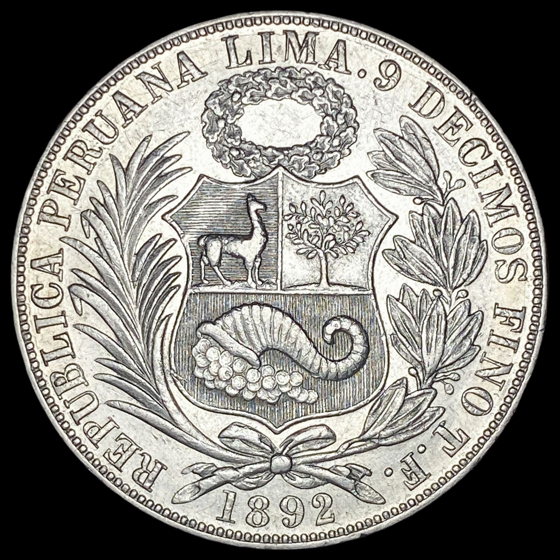 1892 Silver Un Sol Peru CLOSELY UNCIRCULATED
