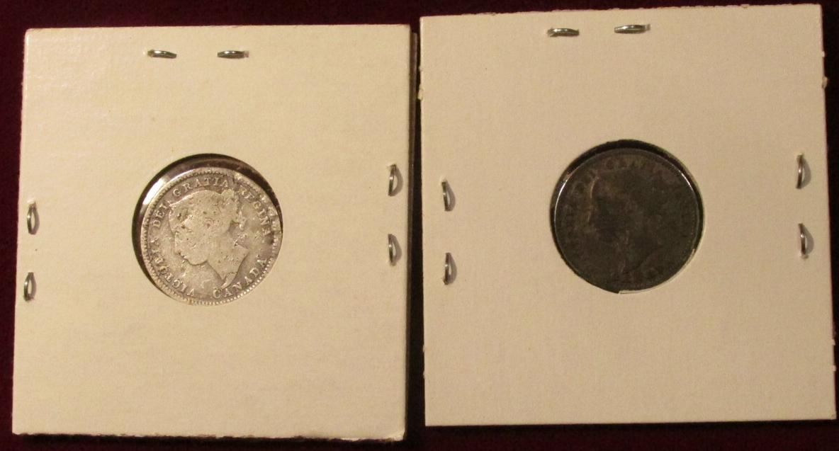 1892 Small 9 Good & 1901 VG Canada Silver Dimes. Catalog Value $30.00.