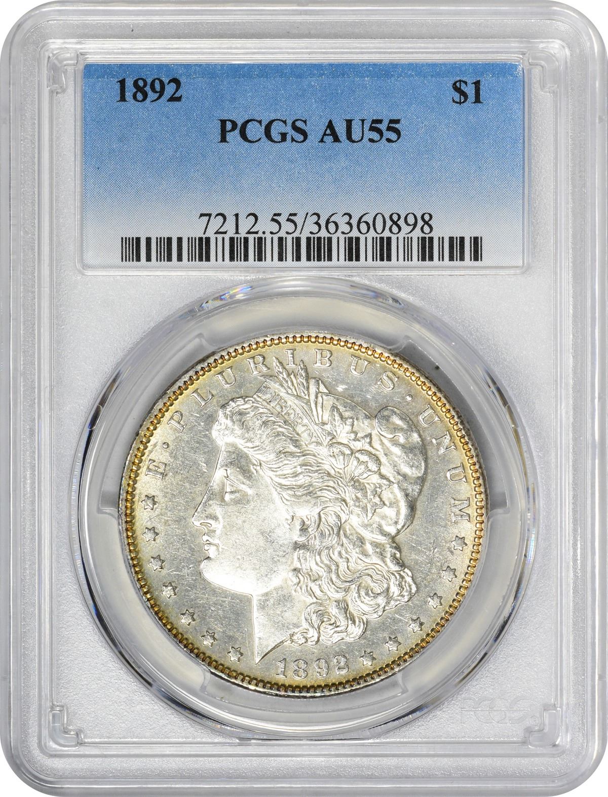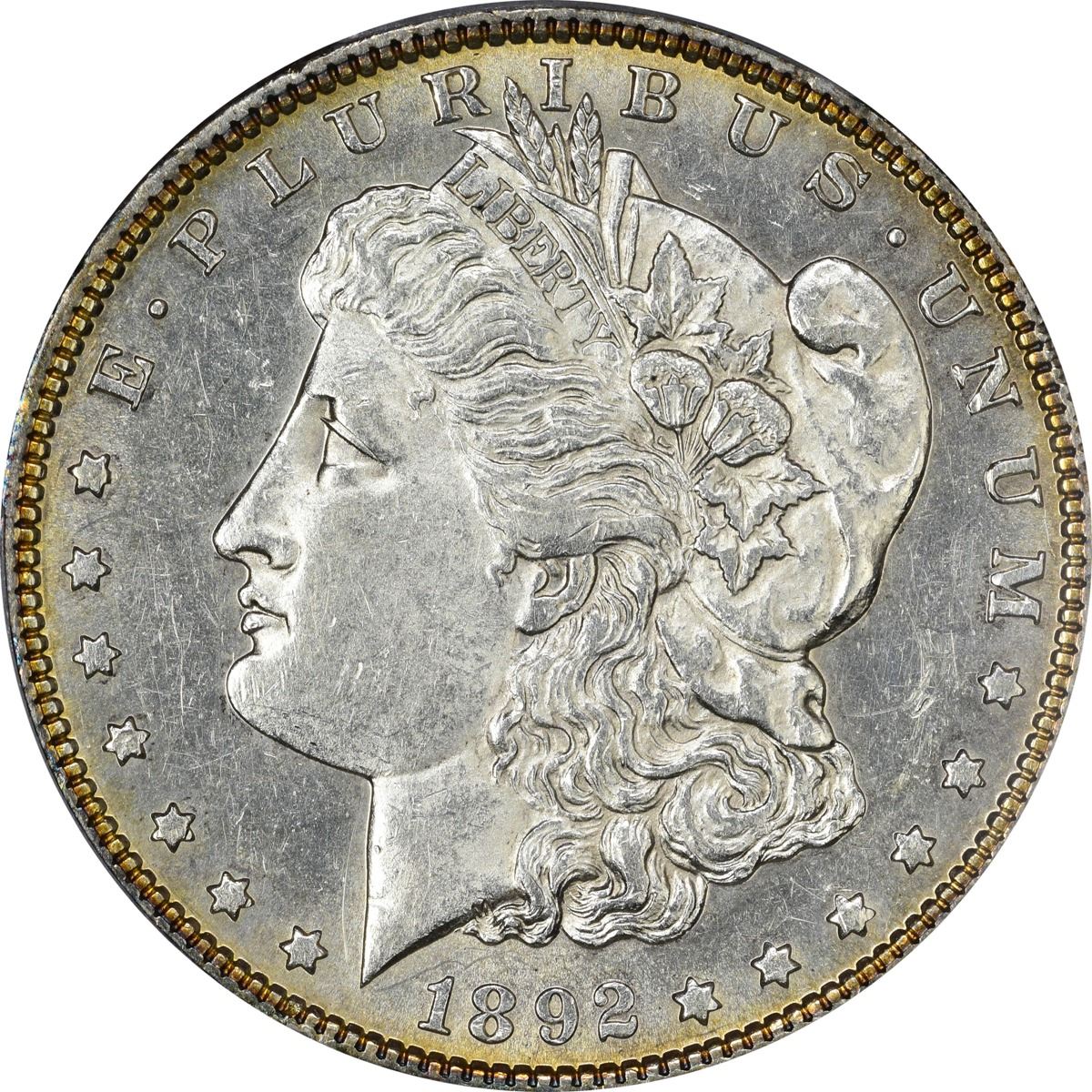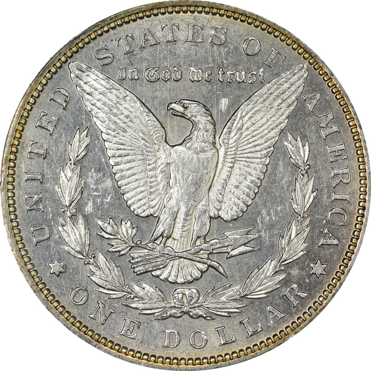 Largely brilliant and satiny with a nuance of golden iridescence at the rims. Not heavily marked and choice for the grade. PCGS #7212