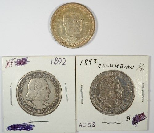 1892 XF & 93 AU COLUMBIAN HALF, & 1946 BOOKER T WASHINGTON CH BU