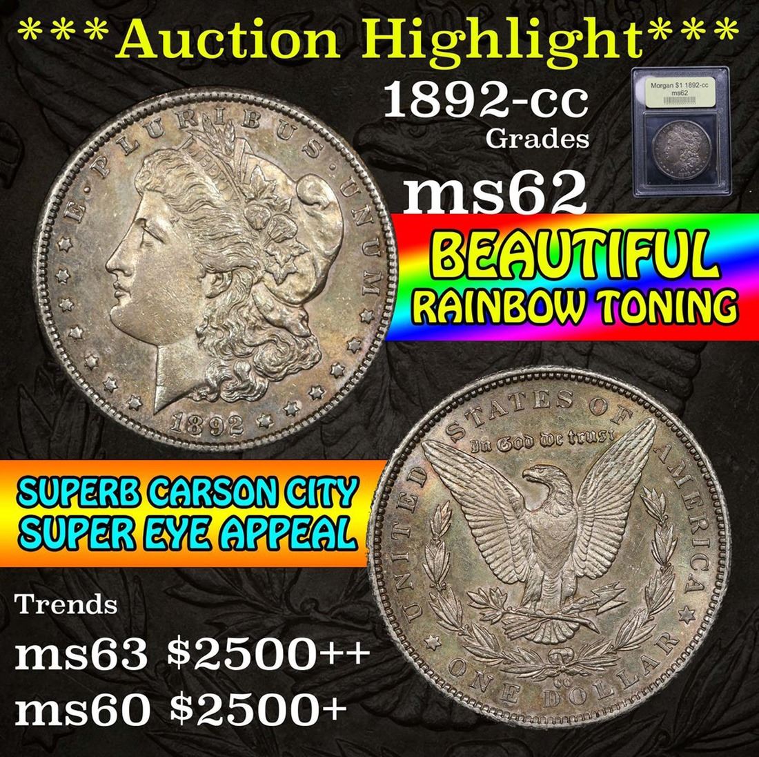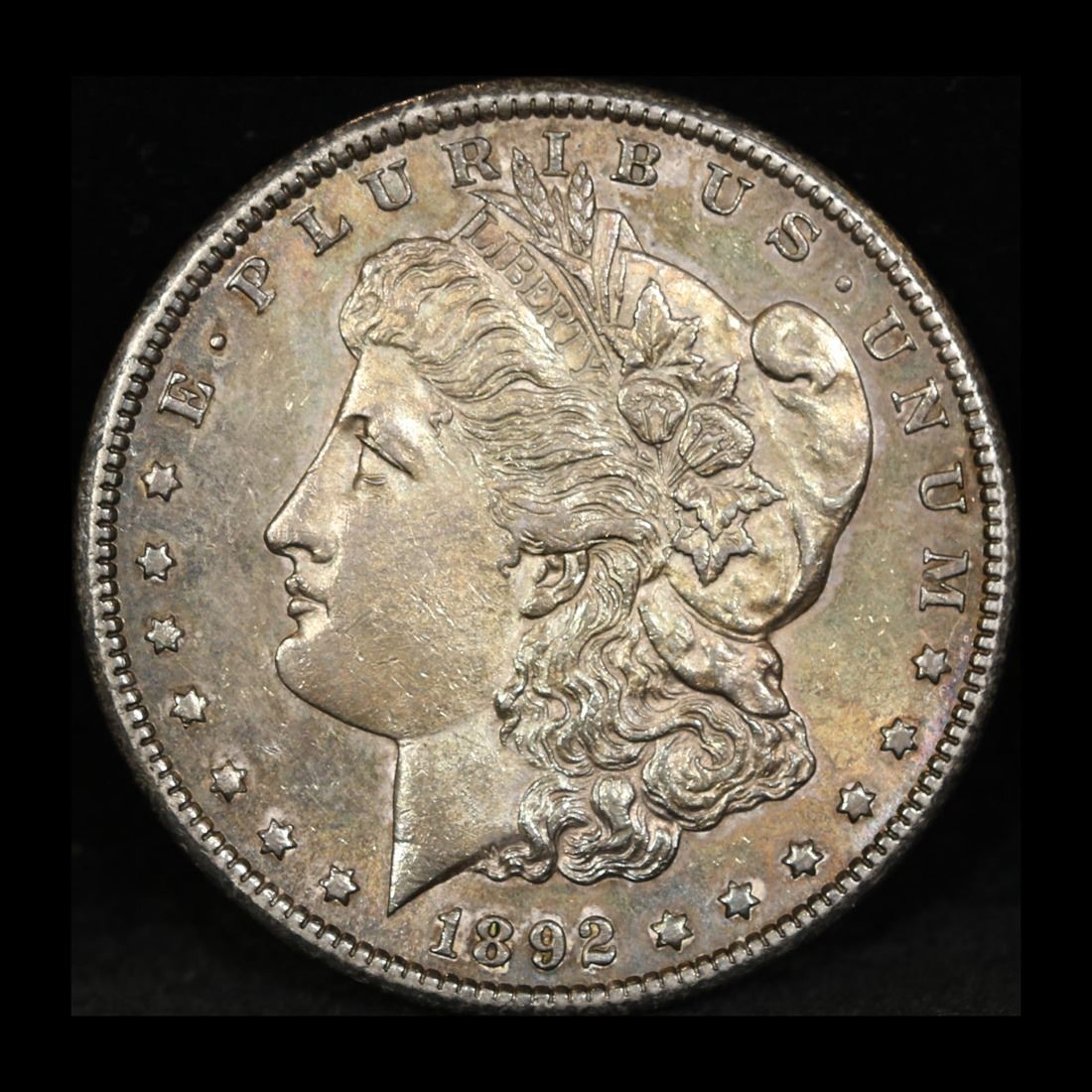 1892-cc Rainbow Toned . . Morgan Dollar $1 Graded Select Unc by USCG.