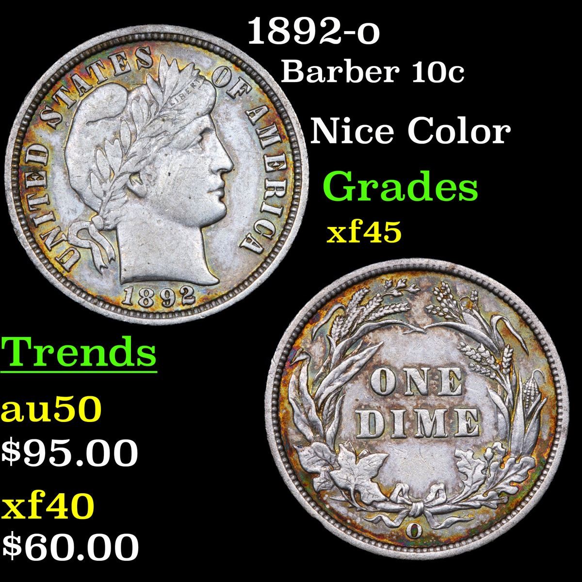 1892-o Nice Color . Barber Dime 10c Grades xf+.
