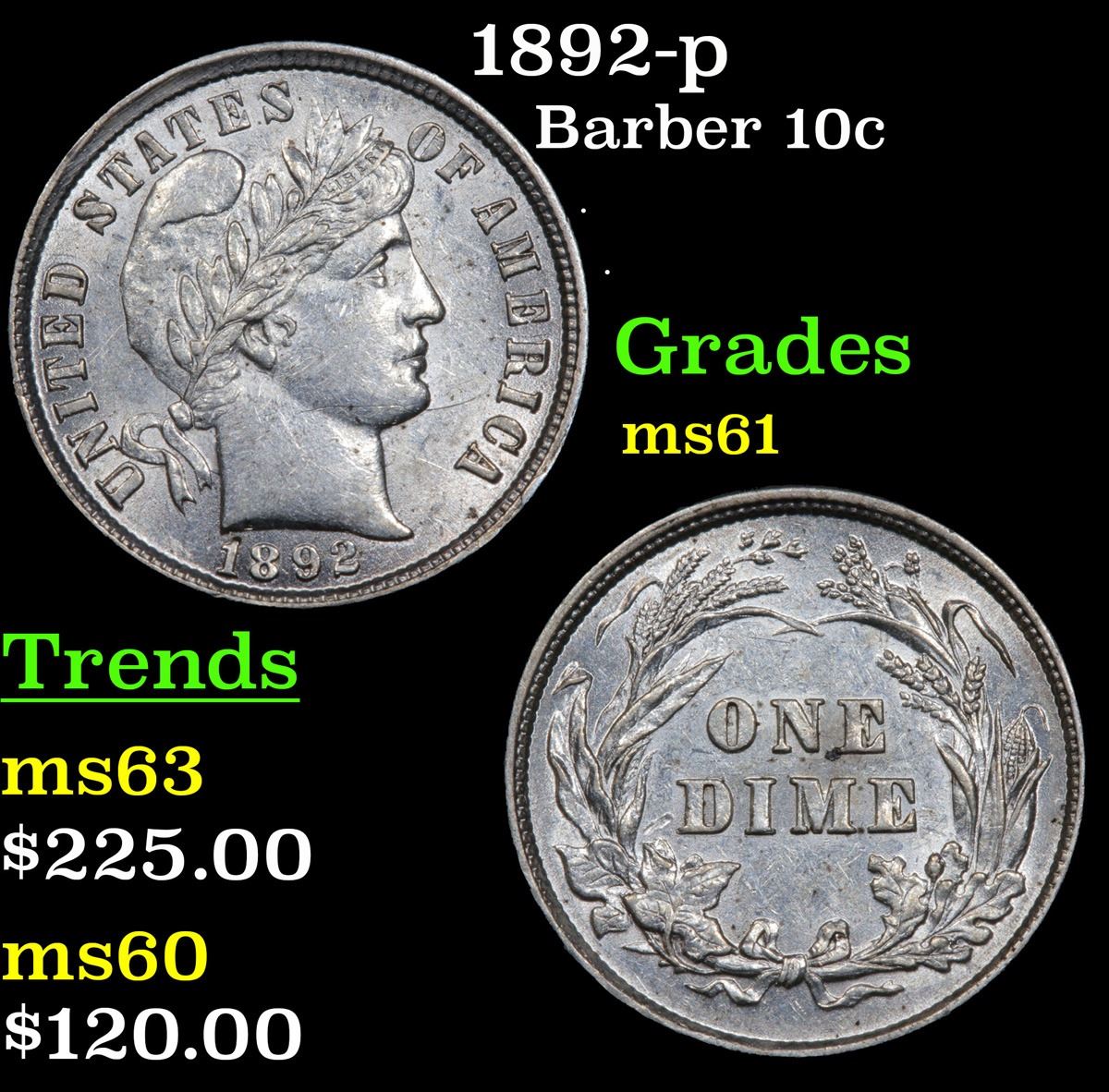 1892-p . . Barber Dime 10c Grades BU+. First year of issue.
