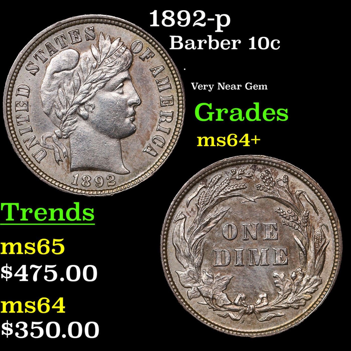 1892-p Barber Dime 10c Grades Choice+ Unc. First year of issue.