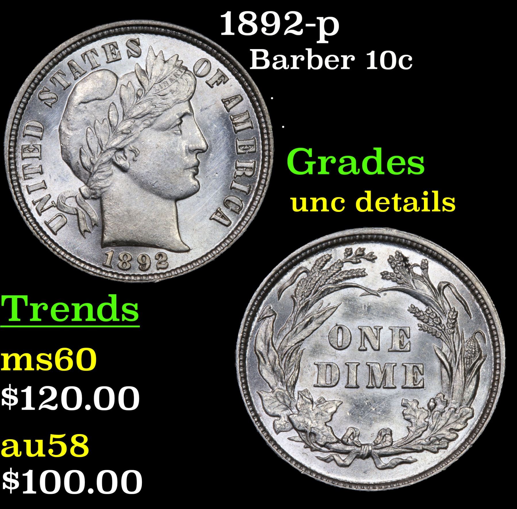 1892-p . . Barber Dime 10c Grades Unc Details. First year of issue.