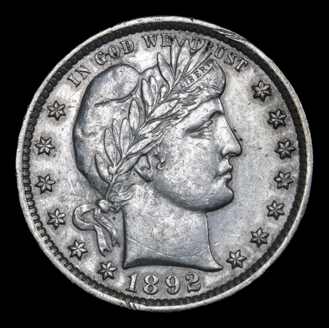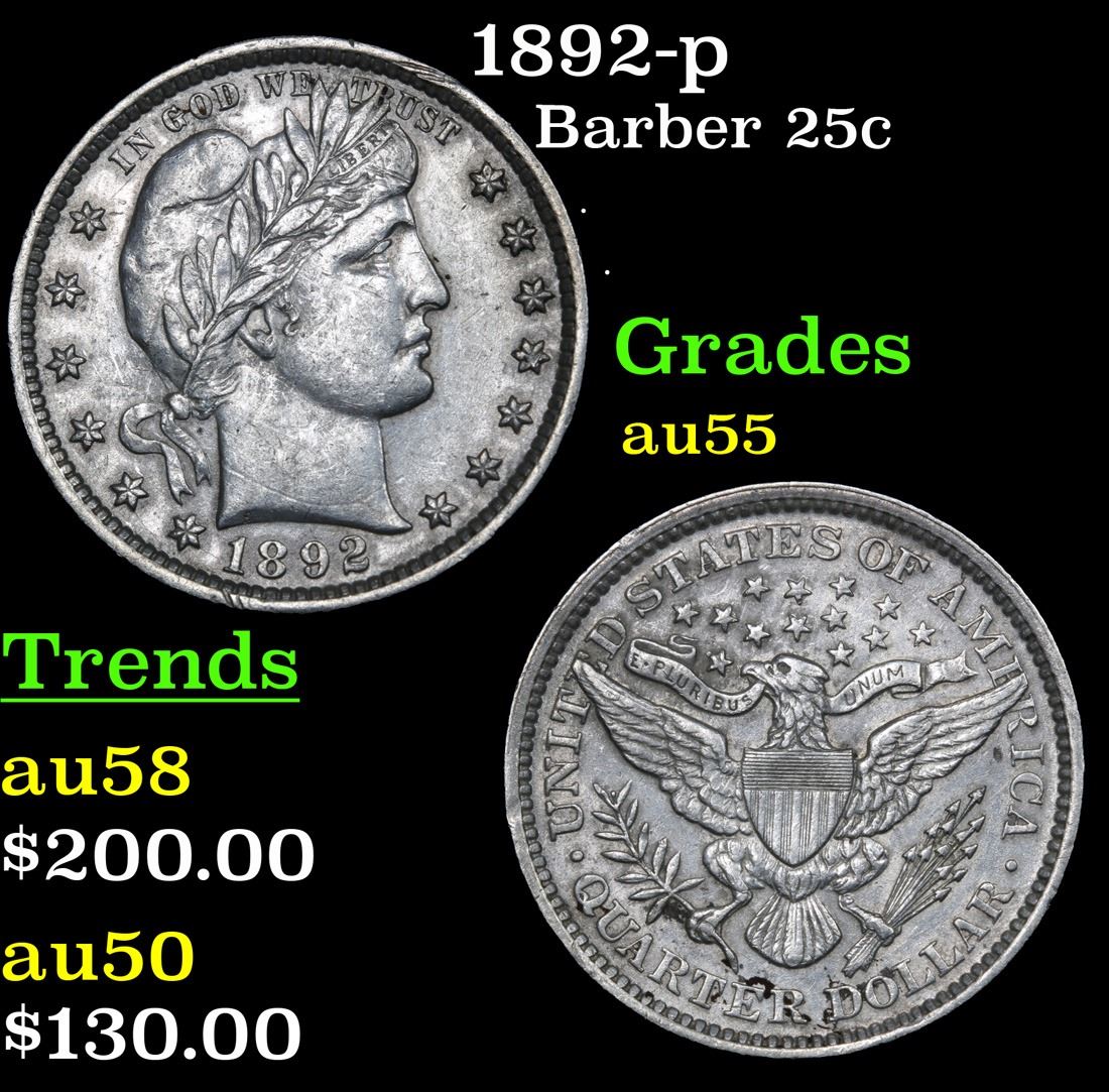 1892-p . . Barber Quarter 25c Grades Choice AU. First year of issue.