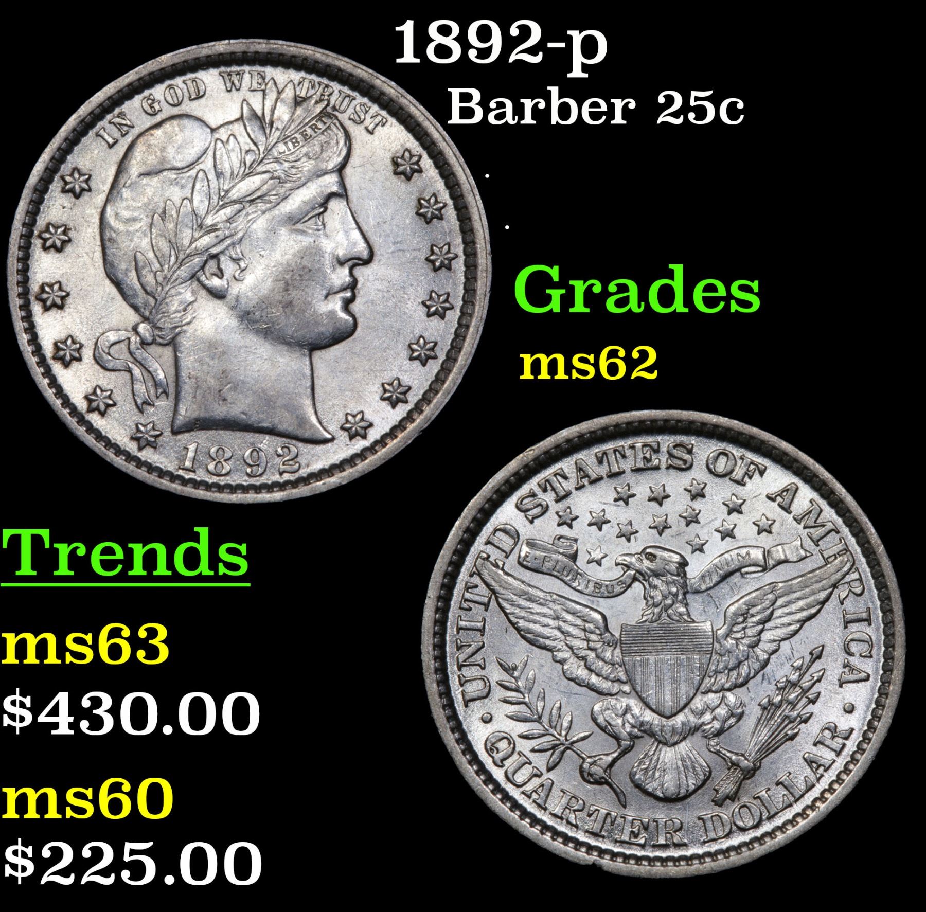 1892-p . . Barber Quarter 25c Grades Select Unc. First year of issue.