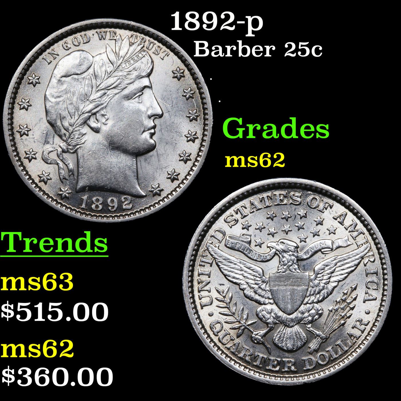 1892-p Barber Quarter 25c Grades Select Unc. First year of issue.