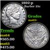 1892-p Barber Quarter 25c Grades Select+ Unc. First year of issue.
