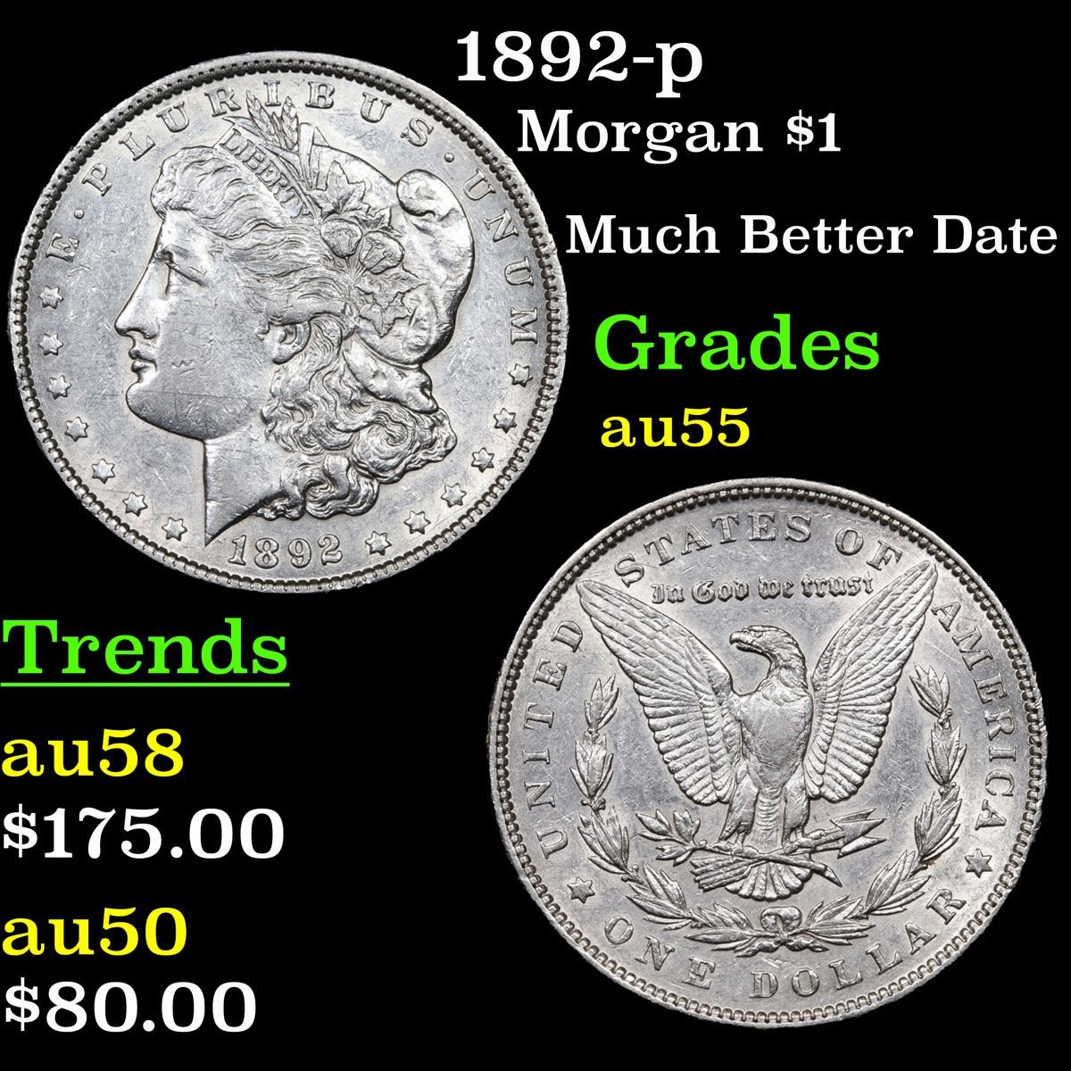 1892-p Much Better Date . Morgan Dollar $1 Grades Choice AU.