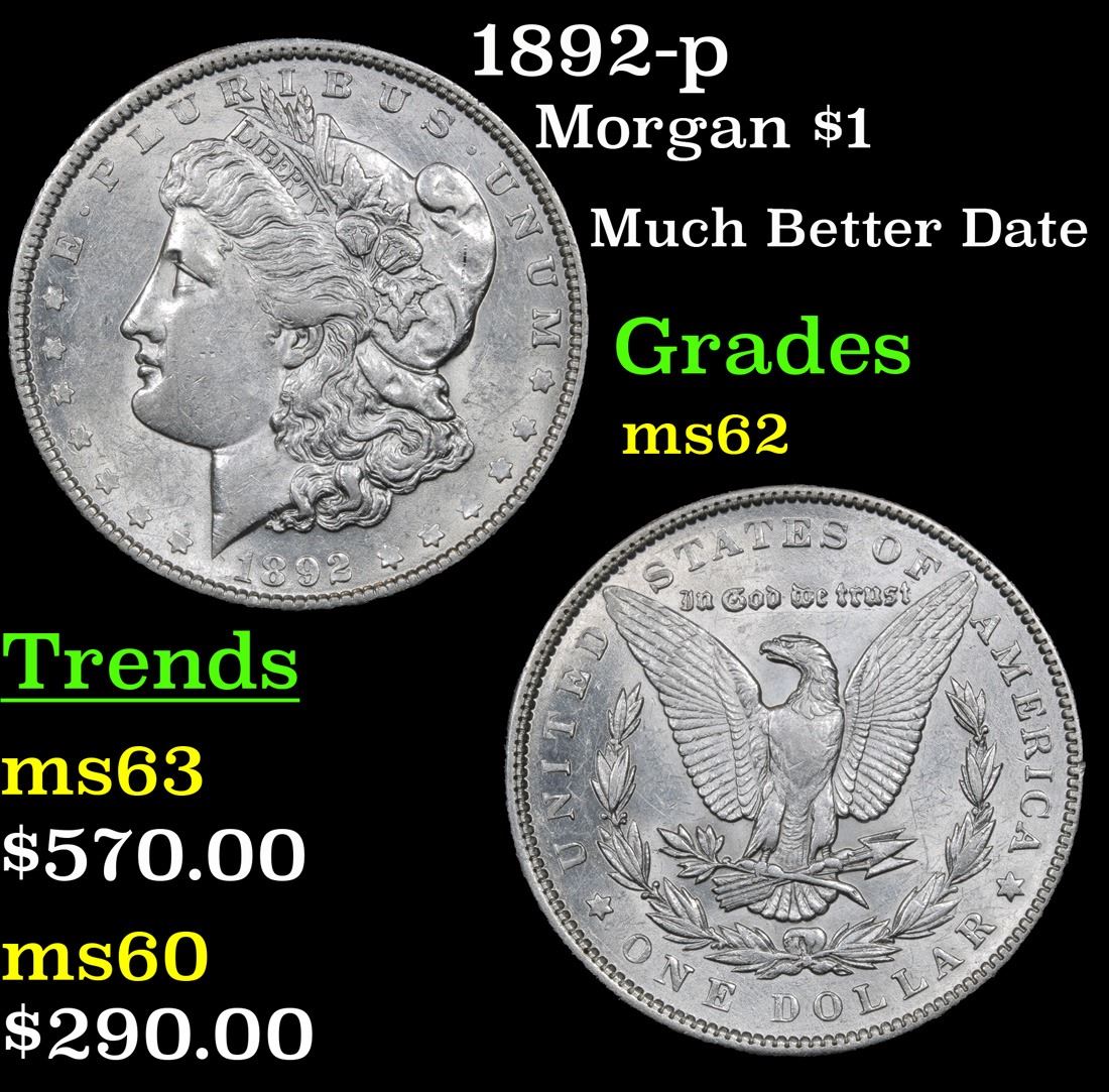 1892-p Much Better Date . Morgan Dollar $1 Grades Select Unc.