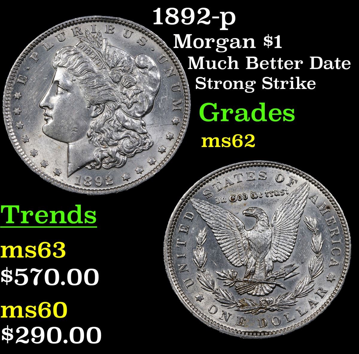 1892-p Morgan Dollar $1 Grades Select Unc.