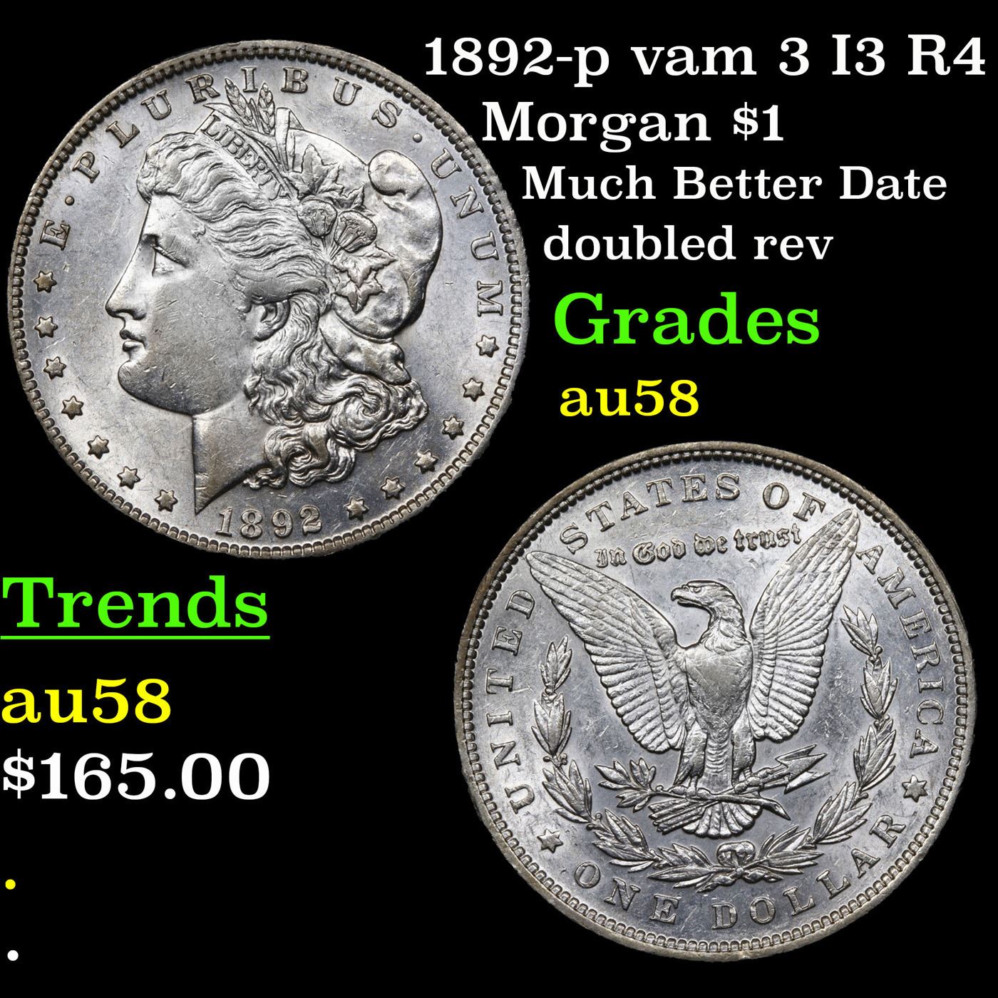 1892-p vam 3 I3 R4 Morgan Dollar $1 Grades Choice AU/BU Slider.