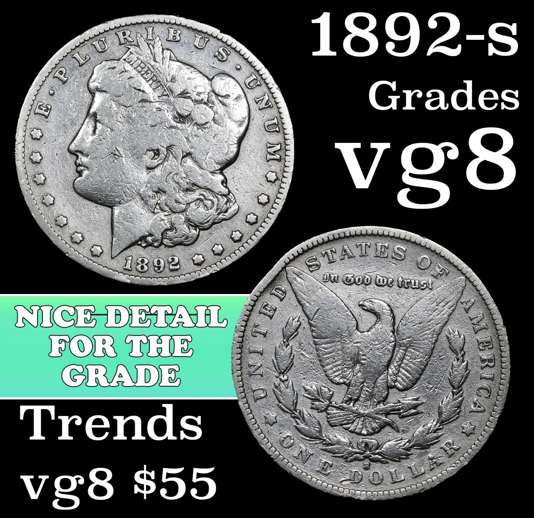 1892-s Morgan Dollar $1 Grades vg, very good.