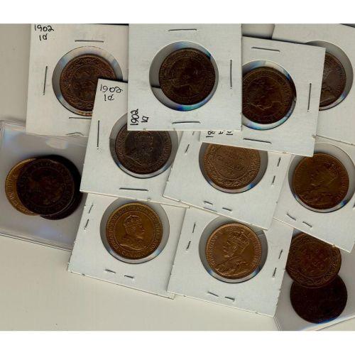 1892 to 1916 1¢. Lot of 10 coins VG to BU. Includes 1882H, 1890H, 1892, 1902(4), 1907H(2), 1908, 1911(2), 1916 and 1919(2). Some cleaned