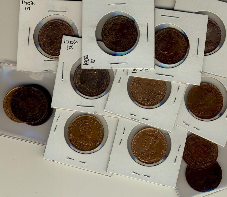 1892 to 1916 1¢. Lot of 10 coins VG to BU. Includes 1882H, 1890H, 1892, 1902(4), 1907H(2), 1908, 1911(2), 1916 and 1919(2). Some cleaned