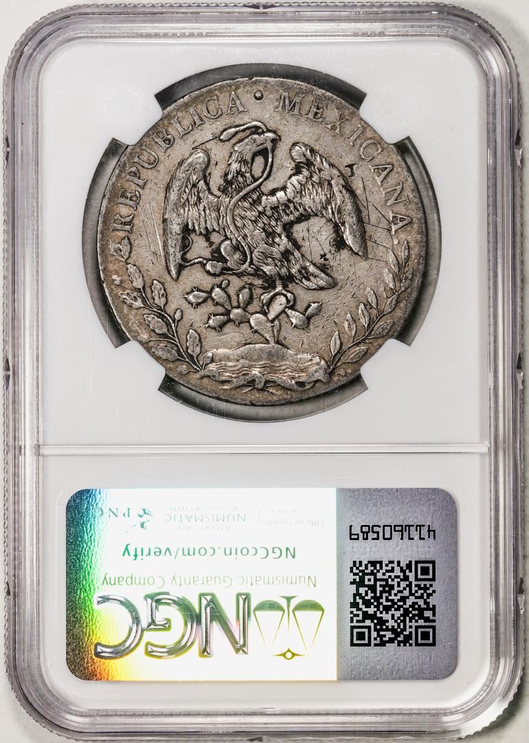 One 1892GO RS Mexico 8 Reales Silver Coin NGC XF Details Chopmarked. NGC Certified.