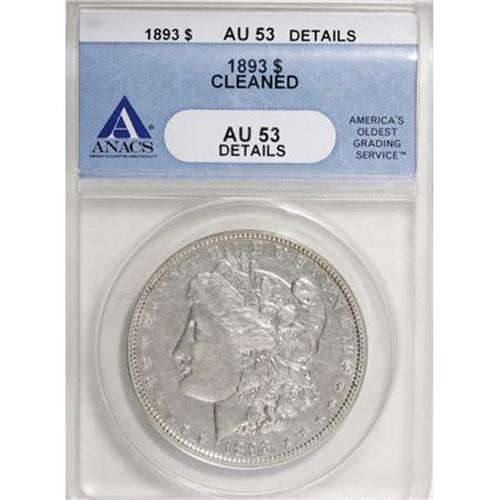 <B>1893 $1 --Cleaned--ANACS.AU53 Details</B></I> NGC Census: (119/1978). PCGS Population (99/3417). Mintage: 389,792. Numismedia Wsl. Price for NGC/PCGS coin in AU53: $330. (#7220)<BR><BR><B>Coin Engraver:</B> George T. Morgan<BR><BR><b>Shipping:</b> Coins & Currency (<a target="_blank" href="http://www.heritageauctions.com/common/shipping.php">view shipping information</a>)
