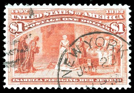 1893, $1 Columbian. Scott 241. SMQ $1,150, XF, with 2005 P.S.E. certificate graded XF 90 and 1986 P.F. certificate